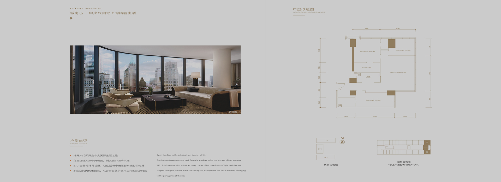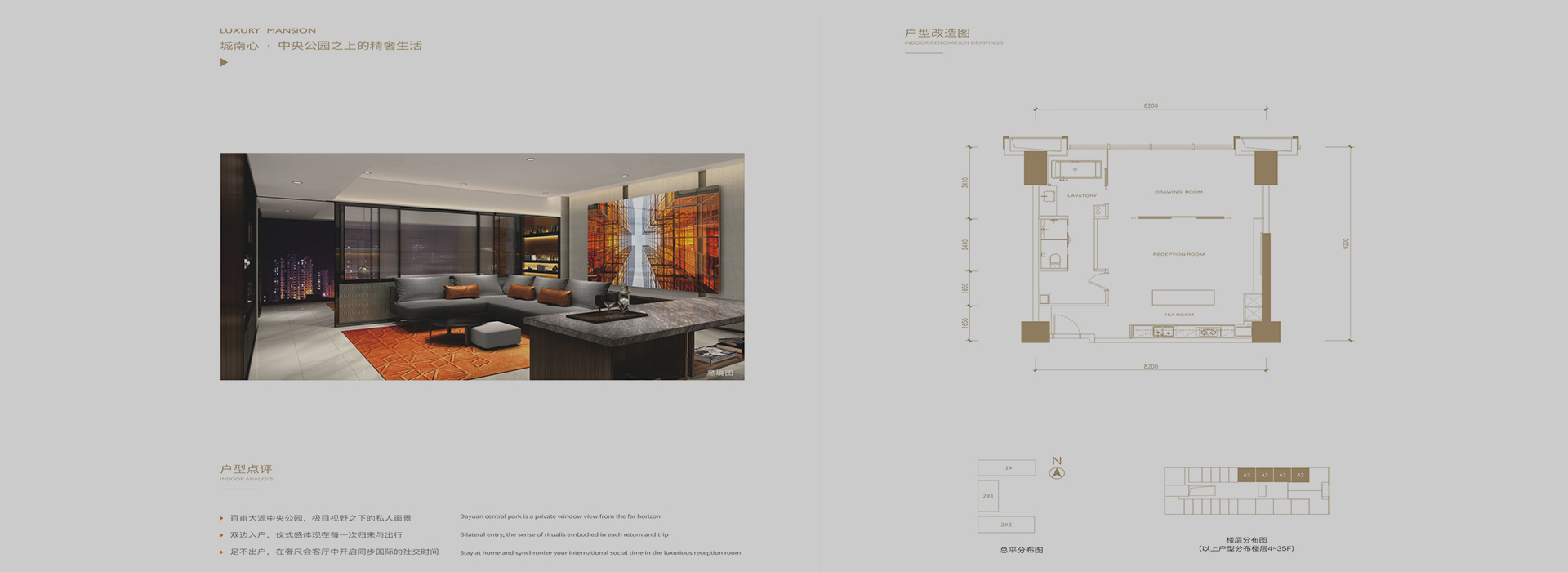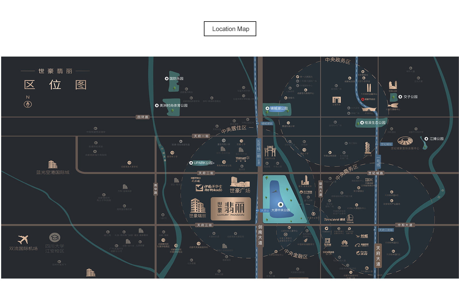 SAIHO Luxury Mansion is located at the center of Dayuan area near to Tianfu Street II of International Chengnan, west to Jiannan Avenue, and enclosed by Tianfu Street II and Tianfu Street III. Dayuan Central Park is located east to SAIHO Luxury Mansion across the street. With excellent geological location, the project builds the “Luxury Mansion” following the suffix “Li” (Luxury Mansion is equal to the Chinese characters “Fei Li”), so that to set new models of housing for the next generation. With metro line 5 (under construction), SAIHO Mall and Ito Yokado, and other top-quality business facilities nearby, SAIHO Luxury Mansion meets all kinds of life demands. With god-blessed natural resources and the 300-mu Dayuan Central Park available out of your window, SAIHO Luxury Mansion realizes your dream for happy life. Chen Jianzhon, a winner of Andrew Martin Global Interior Design, the Oscar for Architecture, undertakes the design work together with his team. In this project, architectural aesthetics and life philosophy are integrated. With the holographic huge-screen views, the beautiful landscape available through the four seasons, exquisite fitting-out with worldwide tier A brands, smart technology, infinity swimming pool, sky backdrop clubs, and other facilities, SAIHO Luxury Mansion is a model of exquisite and luxury life of the generation in Sichuan.