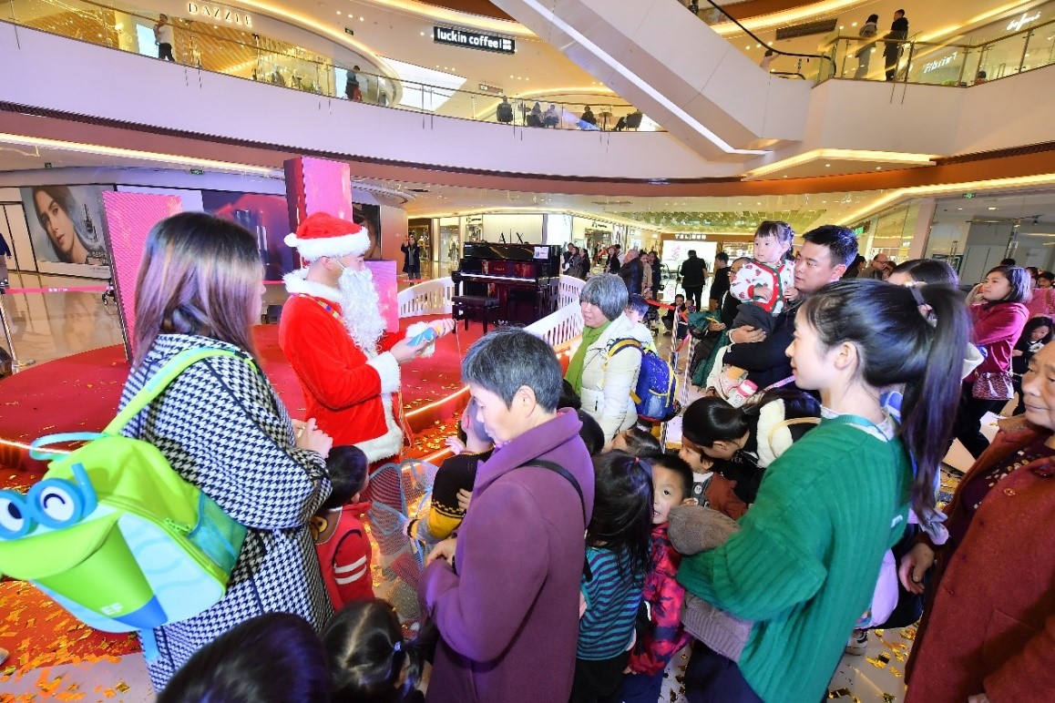 At 18:30, a magically beautiful “rehearse” for the ceremony was put on the stage. Rainbow Tone Band started the first song of the ceremony, unveiled the prelude of the Christmas lightening carnival, setting the whole audience on fire! Later, the classical and elegant ballet performance and piano playing presented an extraordinary visual-audio banquet! Santa Claus also appeared to send greetings to audiences on site, creating thick Christmas atmosphere with original taste and flavor. Later at 7:30, the party reached climax one after another, and in the countdown of “5, 4, 3, 2, and 1”, leaders on site lightened the Christmas tree together, announcing the official beginning of the Christmas season of SAIHO Square Chengdu and starting the “Refreshing life” of SAIHO Square Chengdu.