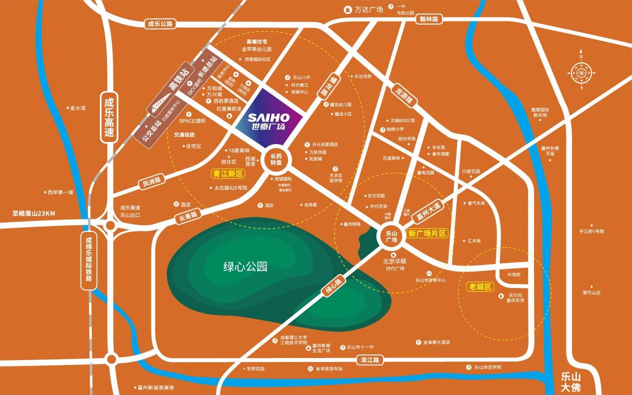 In the fact, before entering Leshan, SAIHO has worked in southwest China for years. From SAIHO Mall Chengdu to SAIHO Mall Leshan, every product launched to the market by SAIHO Xinrui Group is widely praised by the market, which has also set solid foundation for the splendid transformation of Leshan. With the high-speed railway station and other rail traffic facilities, both the new urban center and the central area are urging for the arrival of large commercial complex!